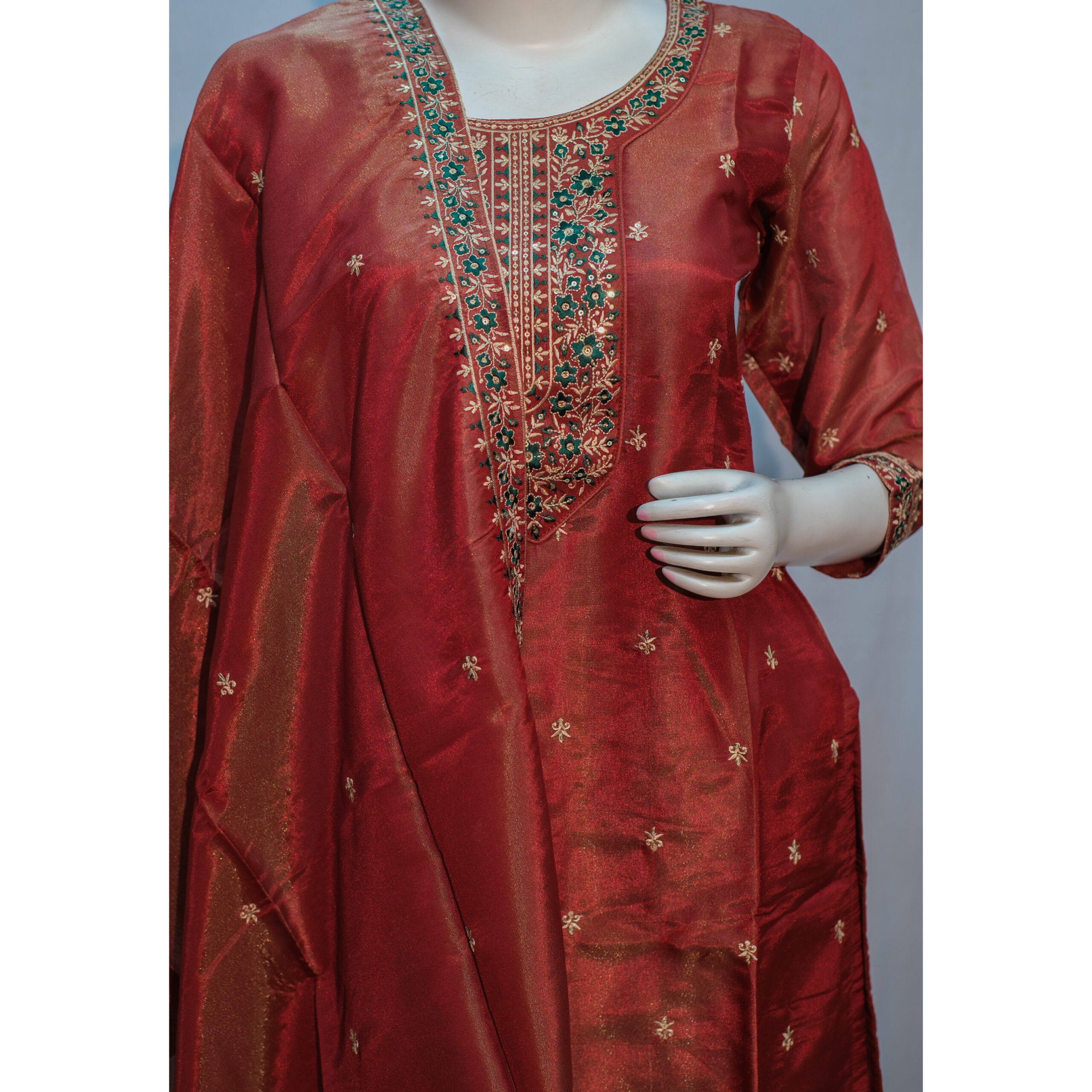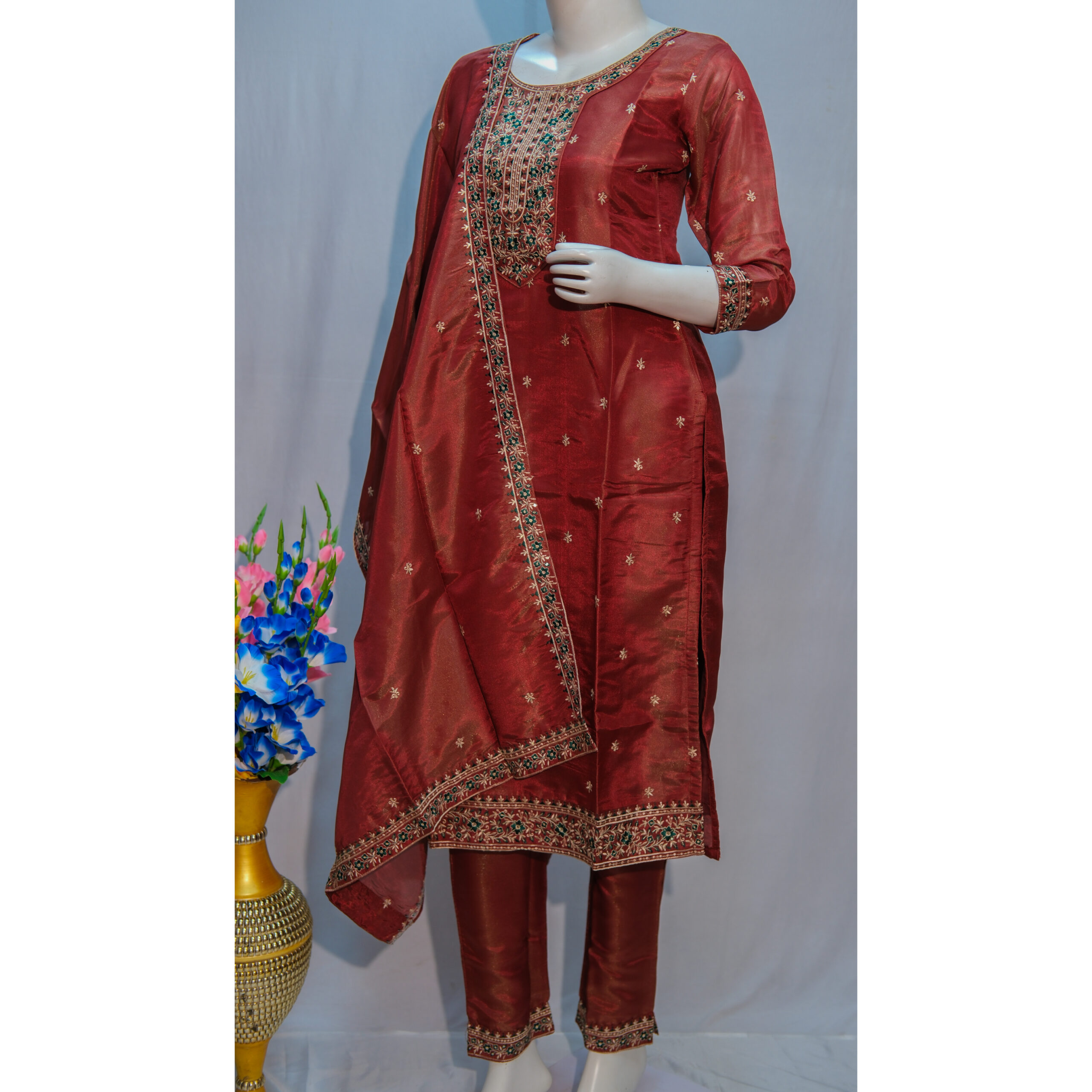 The rich reddish brown hue adds warmth and sophistication, making it a versatile choice for both daytime celebrations and evening events. Designed from premium-quality fabric, this ensemble ensures lasting comfort while maintaining a luxurious feel.