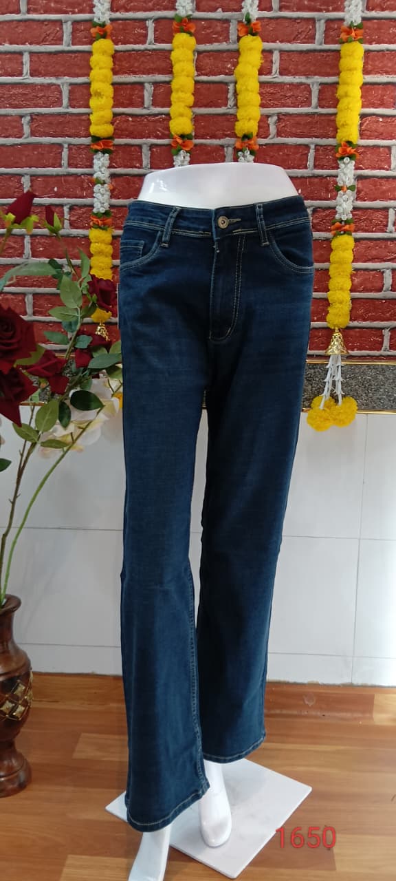 Trendy blue bootcut jeans with a sleek mid-rise design and a modern flare—perfect for casual and semi-casual looks.
