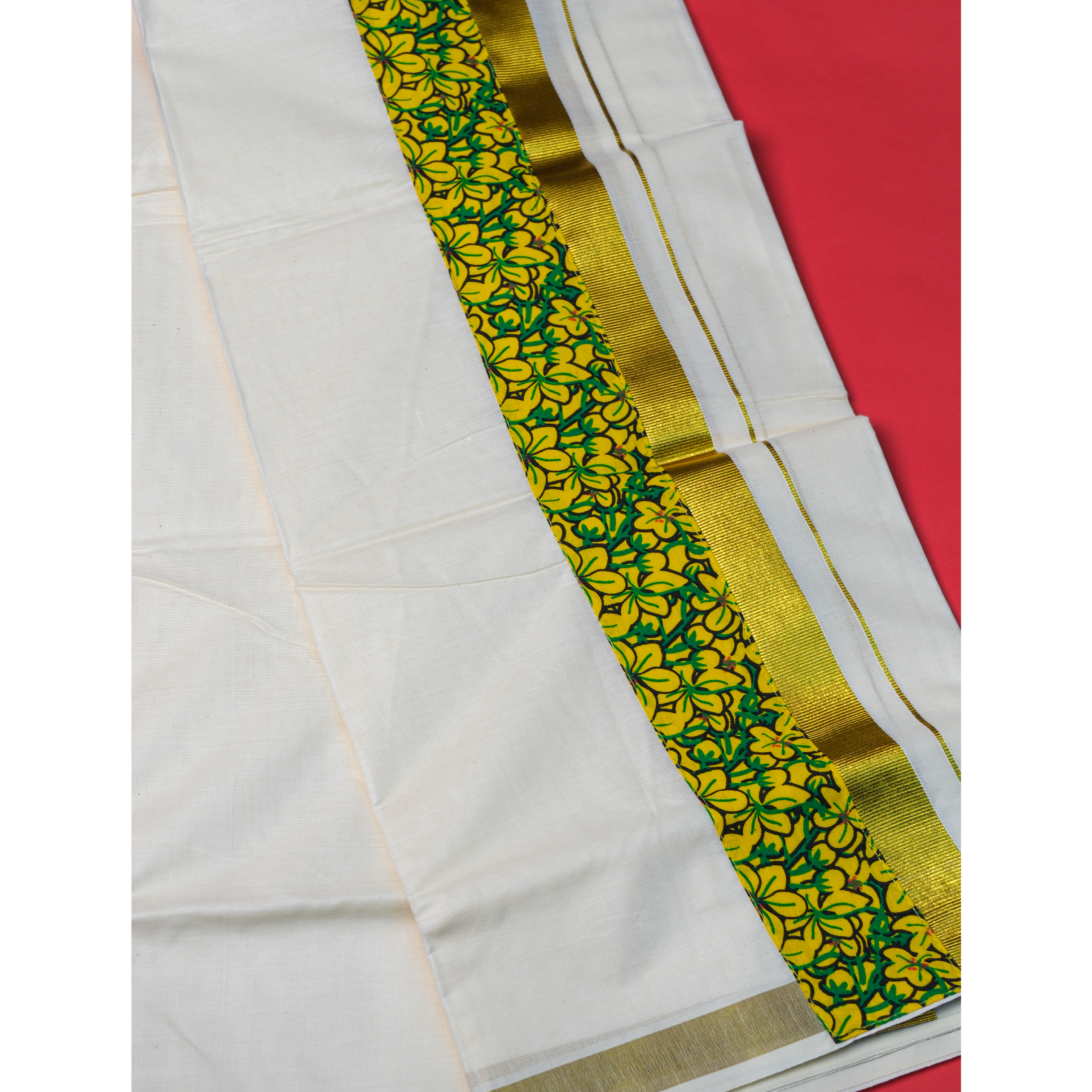 & Free ShippingA traditional Kerala flower‑printed mundu in soft, breathable cotton, featuring elegant floral motifs and subtle borders. Ideal for festive wear or daily elegance.