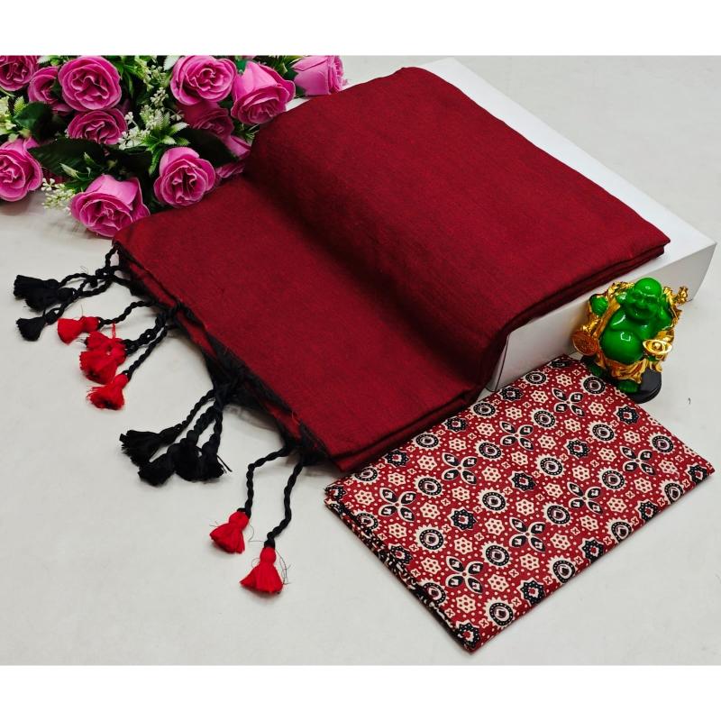 & Free ShippingA Khadi cotton saree paired with a Kalamkari blouse blends rustic charm with artistic elegance. The handwoven texture of the Khadi saree offers a natural, earthy appeal, while the Kalamkari blouse—featuring intricate hand-painted or block-printed designs—adds a vibrant and traditional touch. This combination is perfect for those who value sustainable fashion and timeless Indian artistry.