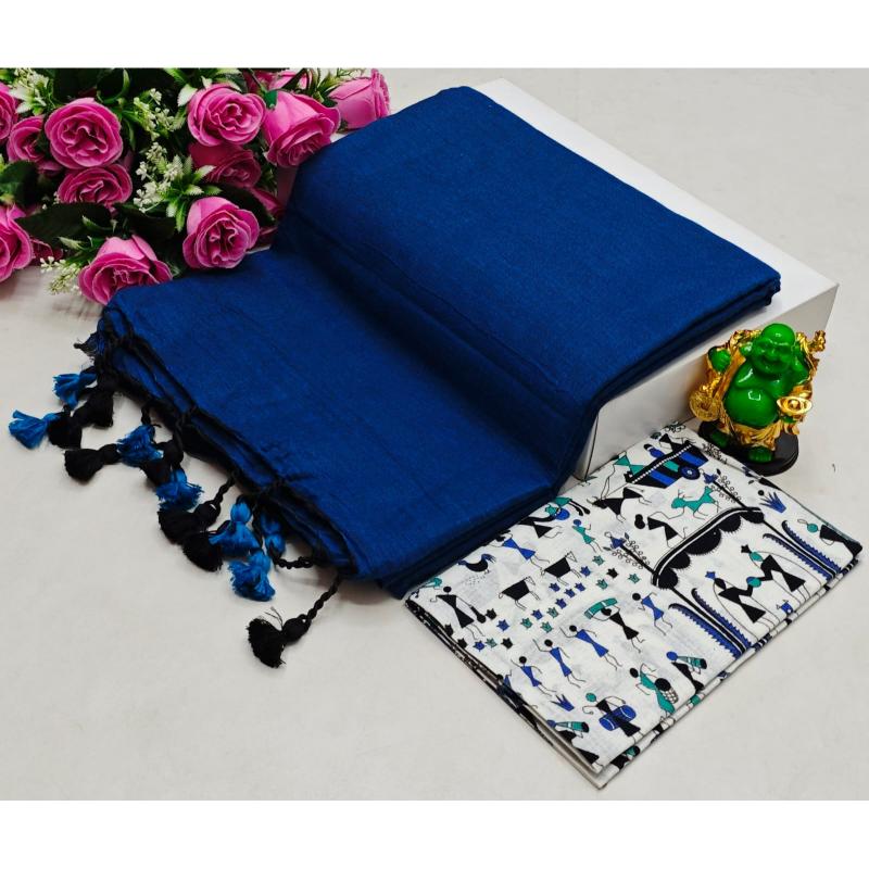 The Khadi cotton saree with a Kalamkari blouse is a beautiful fusion of India’s rich handloom heritage and artistic traditions. Woven from handspun cotton yarns, the Khadi saree is lightweight, breathable, and exudes a raw, earthy elegance that makes it ideal for daily wear as well as casual ethnic occasions. What elevates this look is the Kalamkari blouse—an intricate art form that involves hand-painting or block-printing traditional motifs like florals, peacocks, mythological figures, and temple designs using natural dyes. The colorful, detailed artwork of the Kalamkari contrasts beautifully with the simplicity of the Khadi fabric, creating a well-balanced, eye-catching ensemble. This pairing not only celebrates sustainable, handcrafted fashion but also tells a story of India’s deep-rooted textile artistry.