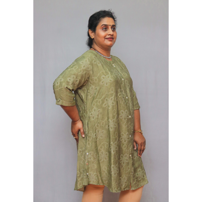 Timeless and sophisticated, this Olive Green Kurta brings together subtle elegance and everyday wearability. Crafted from breathable, high-quality fabric—such as cotton, silk blend, or linen—it offers a flattering fit in a silhouette that complements all body types. The olive green tone adds a rich, earthy charm, making it a versatile choice for both daytime and evening occasions. Whether styled with straight pants, palazzos, or a dupatta, this kurta can be dressed up with jewelry and heels or kept minimal for a more understated look. Ideal for office wear, casual outings, or festive gatherings, this piece brings effortless style with just the right touch of color. Add statement accessories or classic juttis to complete your ensemble with grace.