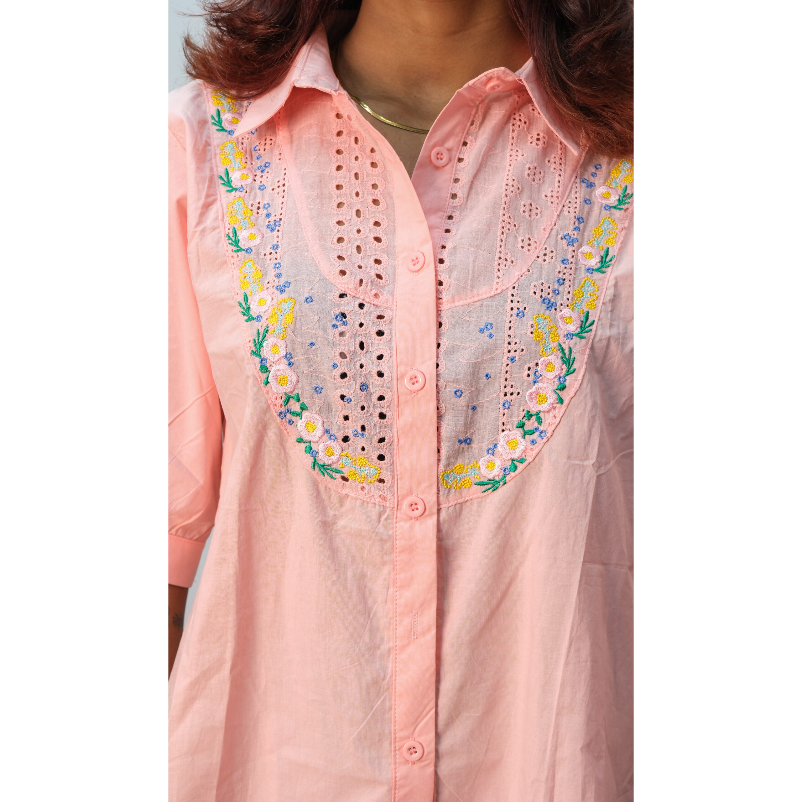 Refresh your wardrobe with this timeless pink shirt — a perfect blend of classic tailoring and modern style. Crafted from lightweight, breathable fabric, it features a structured collar, button-down front, and a flattering silhouette that works for both professional and casual settings. The soft pink hue adds a fresh, feminine touch without overpowering your look, making it a versatile piece you can dress up with trousers or down with jeans. Whether you’re headed to the office, brunch, or a night out, this shirt is your go-to for effortless style and polished comfort.