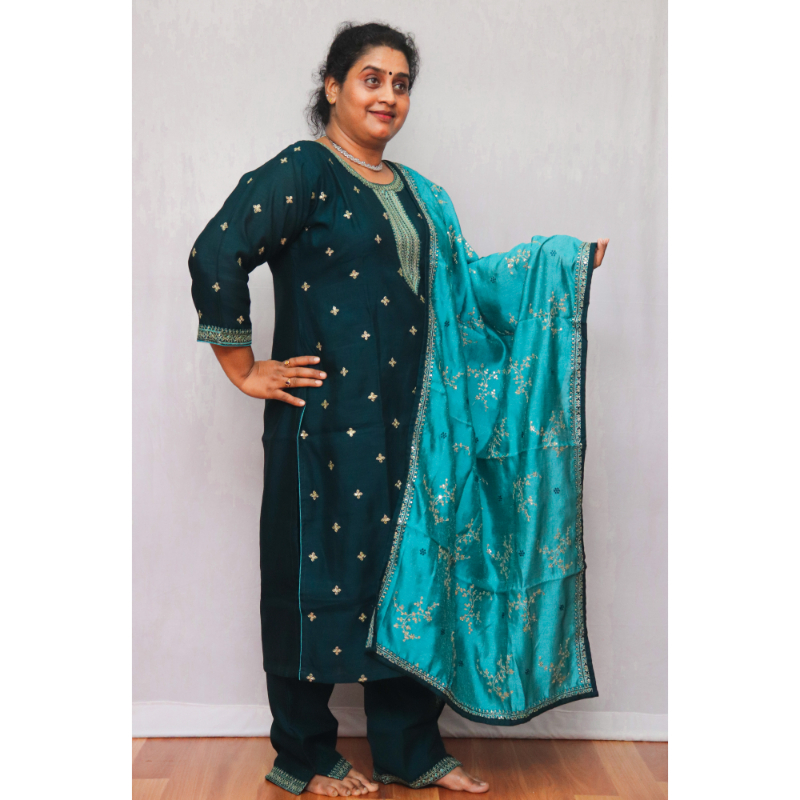 Grace meets sophistication in this Silk Printed Straight Cut Set, crafted from high-quality silk that drapes beautifully while offering a gentle sheen. The kurta features intricate or contemporary prints—ranging from florals to ethnic motifs—adding depth and dimension to the fabric. Tailored in a straight-cut silhouette, it flatters all body types and offers a structured yet comfortable fit. Whether you’re attending a festive celebration, a cultural event, or a formal dinner, this set strikes the perfect balance between traditional allure and modern minimalism. The coordinated bottoms, often in tapered pants or churidar style, complete the ensemble effortlessly. Pair it with delicate jewelry, embellished flats, or heels to elevate the look for both day and evening occasions. A versatile wardrobe staple that transitions gracefully across seasons and events.