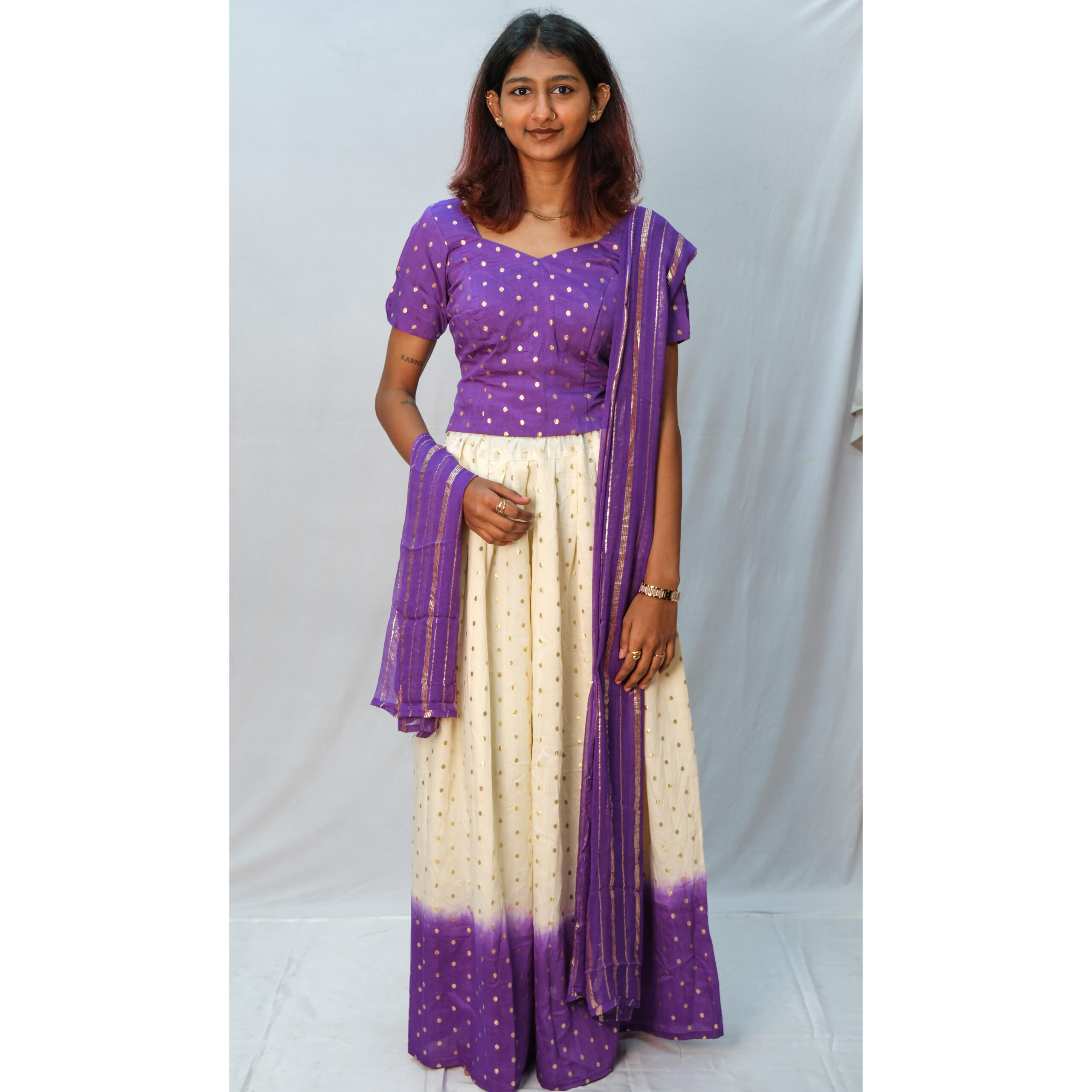 The skirt and blouse ensemble is a versatile outfit that beautifully blends comfort, style, and elegance. Crafted from high-quality fabric, the blouse features a flattering fit with delicate detailing, while the skirt complements it with a graceful flow and perfect tailoring. This combination is ideal for formal events, festive gatherings, or casual wear, depending on how you style it. Available in a range of colors and designs, the skirt and blouse set allows you to express your personal fashion sense effortlessly. Pair it with heels or sandals and minimal accessories for a complete, polished look that never goes out of style.