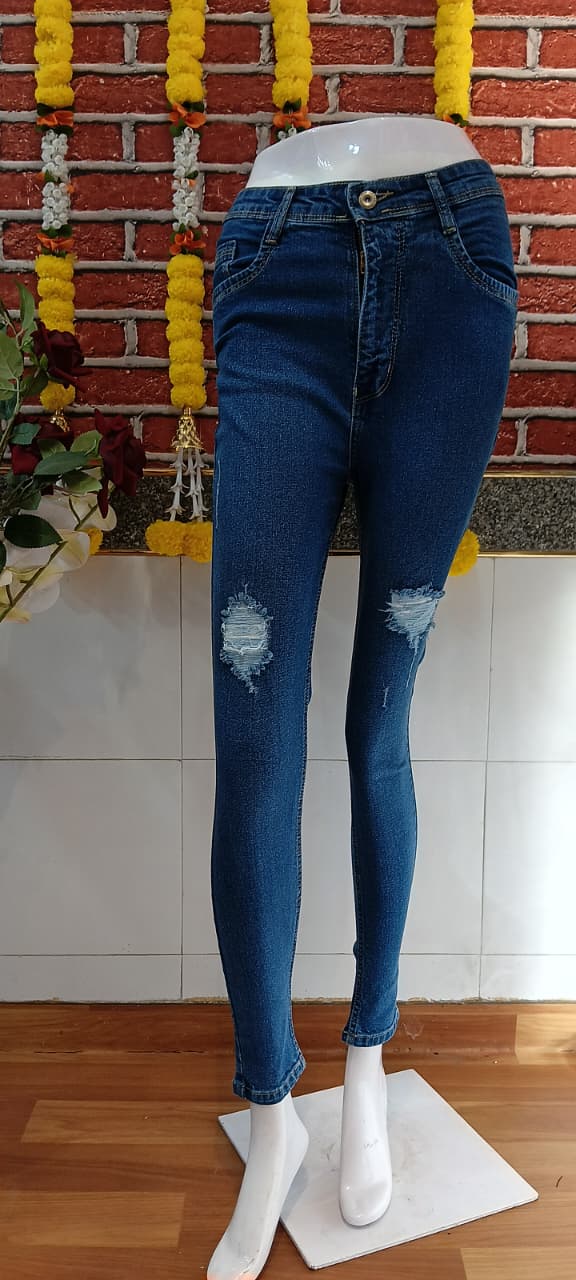Classic blue stone-tone jeans with a vintage wash, offering a stylishly rugged look and all-day comfort.