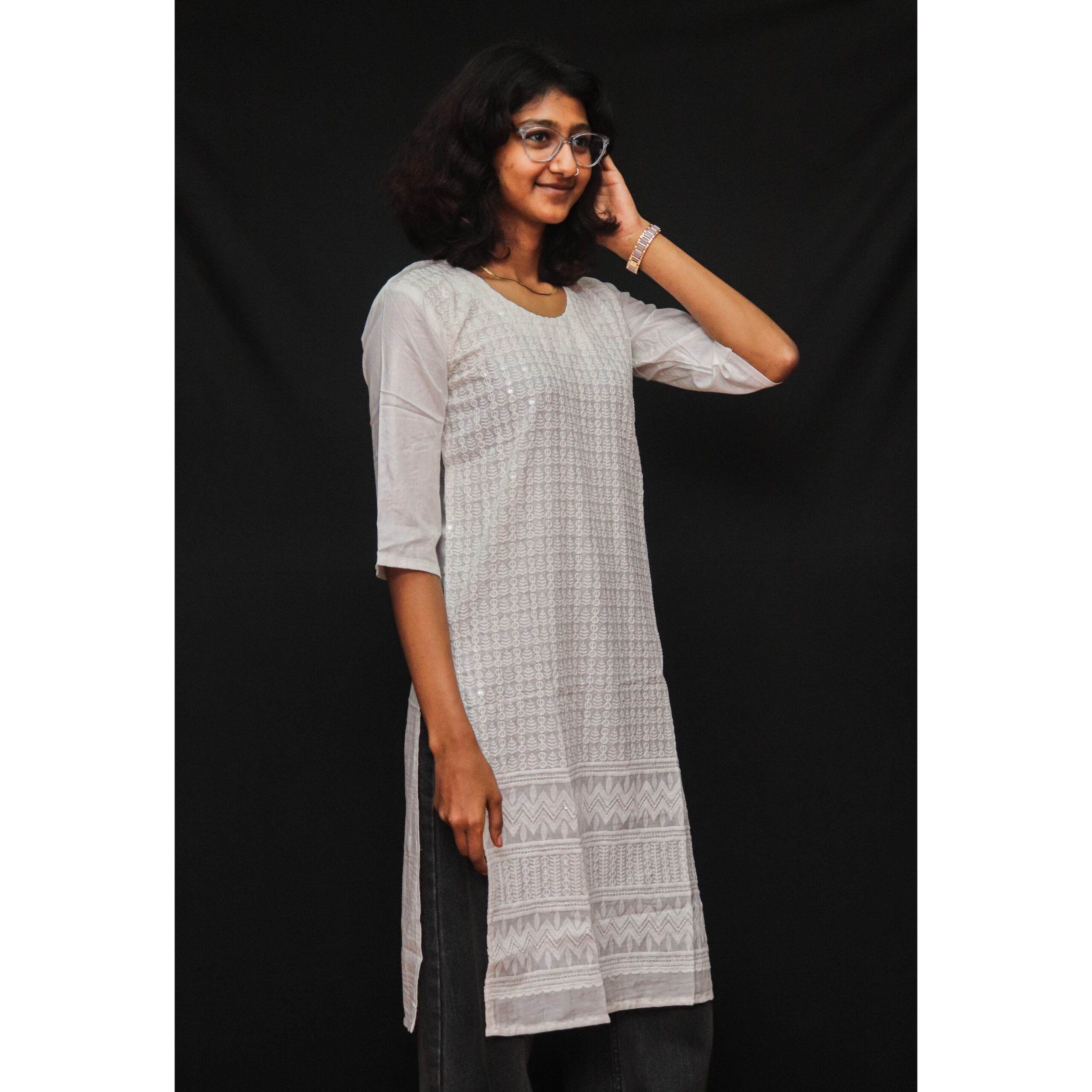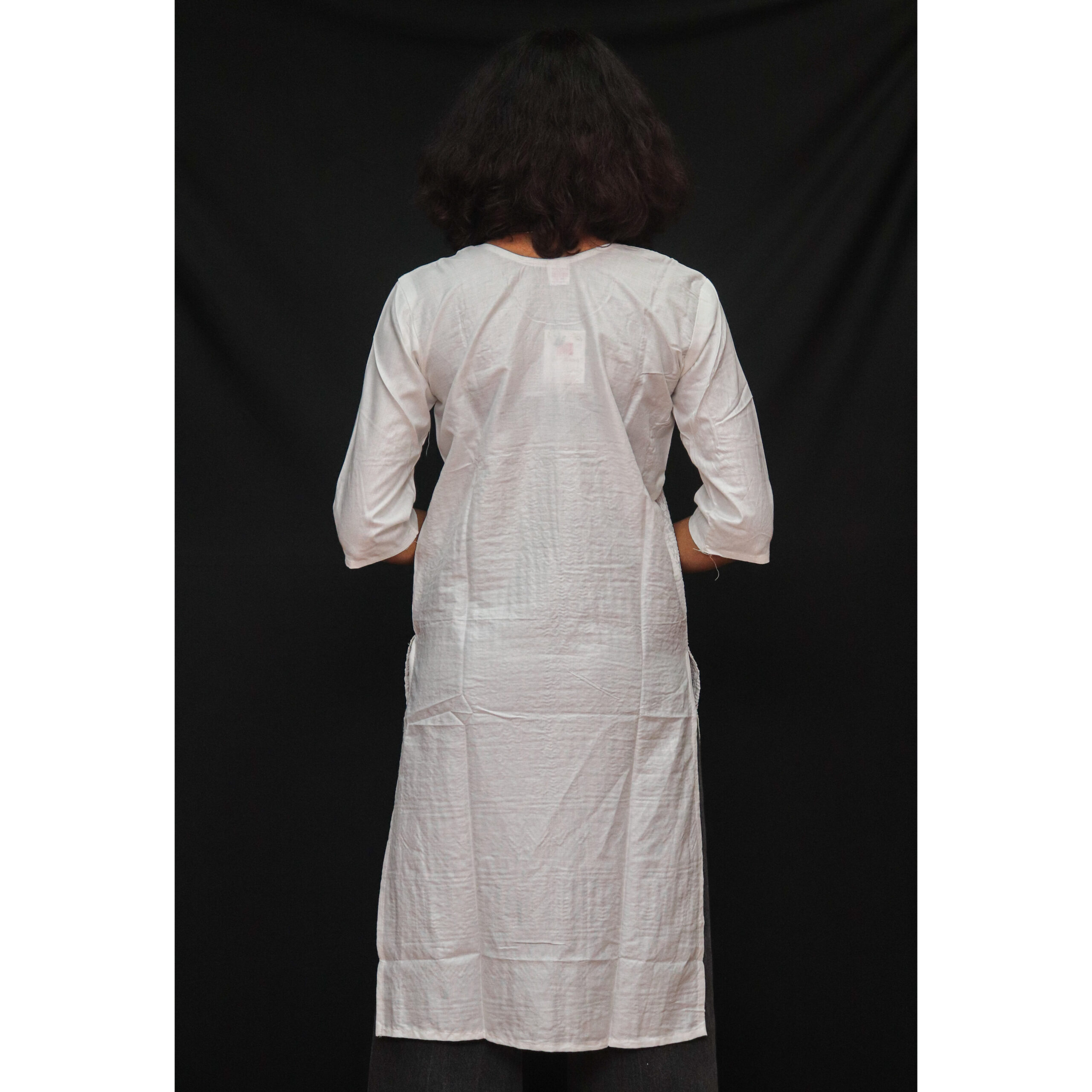 Embrace effortless elegance with this white straight printed kurta, a wardrobe essential for those who appreciate subtle style. Crafted from soft, breathable fabric, it features delicate prints that add a touch of sophistication to its crisp white base. The straight-cut silhouette ensures a flattering fit, making it ideal for everyday wear, office dressing, or casual outings. Its versatile design pairs beautifully with a variety of bottoms — from vibrant dupattas and churidars to sleek trousers and jeans. A perfect balance of comfort and charm, this kurta is your go-to for a clean, polished look.